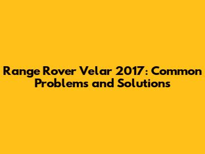 Range Rover Velar 2017: Common Problems And Solutions