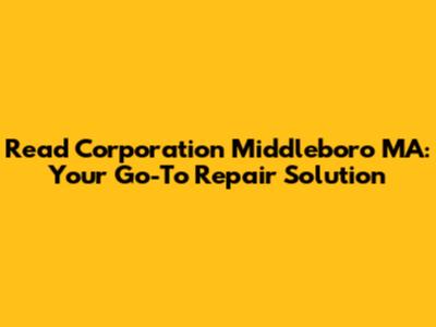 Read Corporation: Your Guide To Middleboro's Trusted Repair Experts