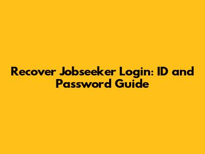 Recover Jobseeker Login: ID And Password Guide