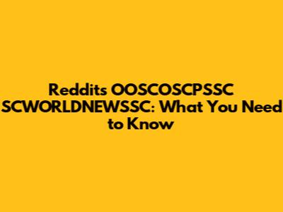 Reddit's OOSCOSCPSSC SCWORLDNEWSSC: What You Need To Know