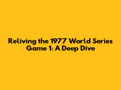 Reliving The 1977 World Series Game 1: A Deep Dive