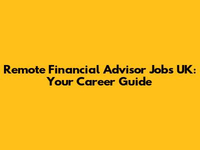Remote Financial Advisor Jobs UK: Your Career Guide
