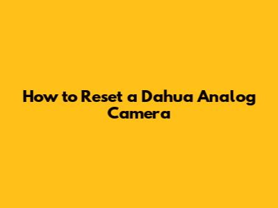Reset Dahua Analog Camera: Simple Steps