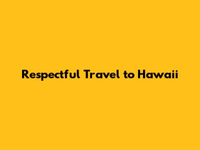 Respectful Travel To Hawaii