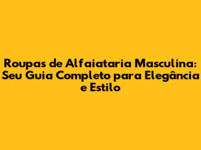 Roupas De Alfaiataria Masculina: Guia Completo Para Um Visual Impecável
