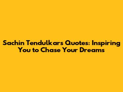 Sachin Tendulkar's Quotes: Inspiring You To Chase Your Dreams