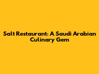 Salt Restaurant: A Saudi Arabian Culinary Gem