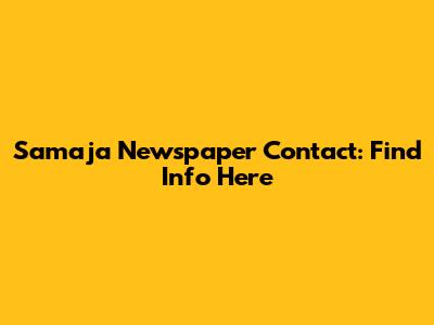 Samaja Newspaper Contact: Find Info Here
