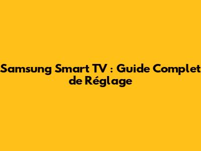 Samsung Smart TV : Guide Complet De Réglage