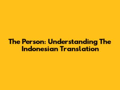 The Person: Understanding The Indonesian Translation
