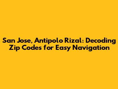 Hey guys! Ever found yourself scratching your head, wondering about the zip code for a particular area? Well, if you're curious about San Jose in Antipolo, Rizal, you've landed in the right spot! Navigating the world of addresses, especially when it comes to online shopping, sending mail, or even just telling someone where you live, can be a breeze with the right information. Let's dive deep into understanding the zip code for San Jose, Antipolo, Rizal, and why it's super important. We'll explore why knowing the zip code matters, how to find it, and what else you might need to know about this vibrant area. Plus, we'll sprinkle in some fun facts and helpful tips along the way to make things interesting and easy to follow. Get ready to become a zip code pro when it comes to San Jose! Knowing your zip code isn't just about sending mail; it's about connecting with your community and making sure everything from your online orders to your important documents gets to the right place, quickly and efficiently. Let's get started!