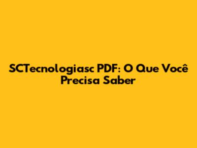 SCTecnologiasc PDF: O Que Você Precisa Saber