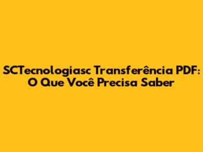 SCTecnologiasc Transferência PDF: O Que Você Precisa Saber