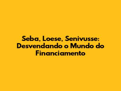 Hey guys! Ever feel like the world of finance is a giant, confusing maze? You're not alone! Today, we're diving deep into the often-mysterious world of financiamento, focusing on three key concepts: Seba, Loese, and Senivusse. Don't worry, we'll break it down so it's easy to understand. Think of this as your friendly guide to navigating the ins and outs of getting the financial support you need. Whether you're dreaming of a new car, a home renovation, or simply want to understand how your finances work, understanding these terms can be super helpful. Let's get started, shall we?