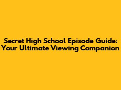 Where to Watch Secret High School: Your Streaming Guide