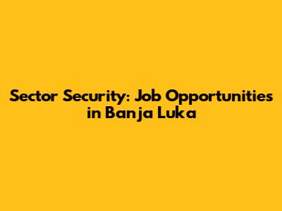 Sector Security: Job Opportunities In Banja Luka