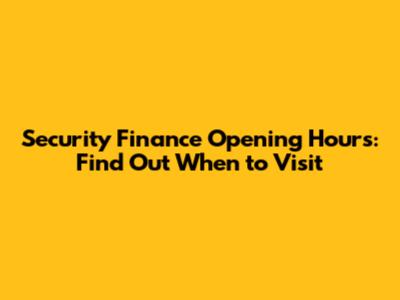 Security Finance Opening Hours: Find Out When To Visit