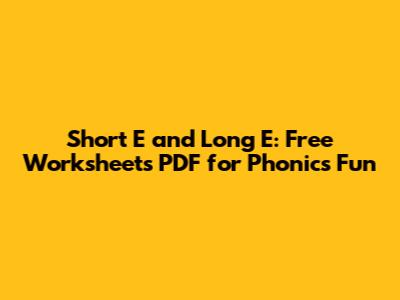 Short E Vs. Long E: Free Worksheets PDF