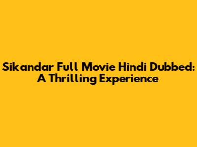 Where to Watch "Sikandar" Hindi Dubbed: Your Streaming Guide