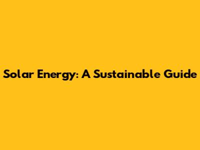 Solar Energy: A Sustainable Guide