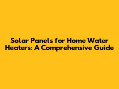 Solar Panels For Home Water Heaters: A Comprehensive Guide