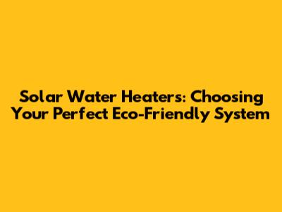 Solar Water Heaters: Choosing Your Perfect Eco-Friendly System