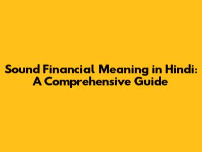 Sound Financial Meaning In Hindi: A Comprehensive Guide