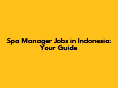 Spa Manager Jobs In Indonesia: Your Guide