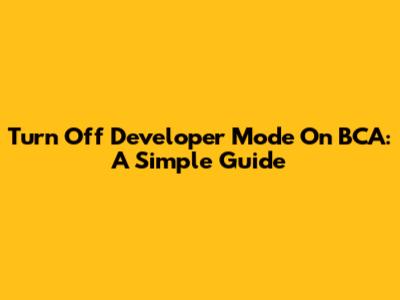 Turn Off Developer Mode On BCA: A Simple Guide