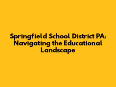 Springfield School District PA: A Comprehensive Guide