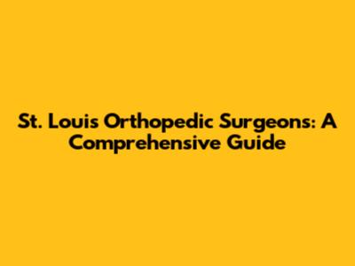St. Louis Orthopedic Surgeons: A Comprehensive Guide