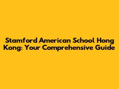 Stamford American School Hong Kong: Your Comprehensive Guide