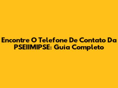 Encontre O Telefone De Contato Da PSEIIMIPSE: Guia Completo