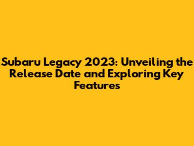 Subaru Legacy 2023: Release Date, Specs, And Features