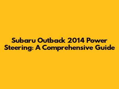 Subaru Outback 2014 Power Steering: A Comprehensive Guide
