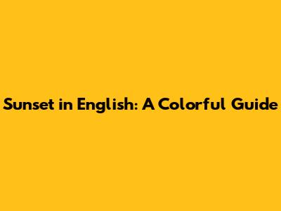 Sunset In English: A Colorful Guide