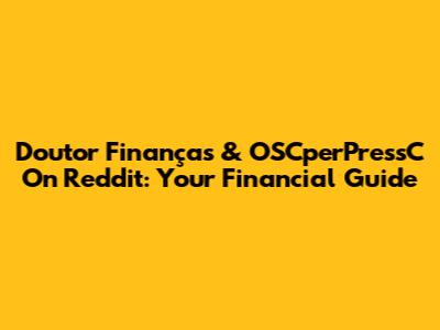 Doutor Finanças & OSCperPressC On Reddit: Your Financial Guide