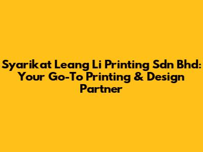 Syarikat Leang Li Printing Sdn Bhd: Your Printing & Design Partner