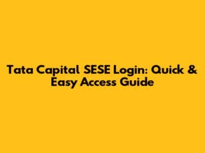 Tata Capital SESE Login: Quick & Easy Access Guide