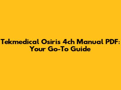 Tekmedical Osiris 4ch Manual PDF: Your Go-To Guide