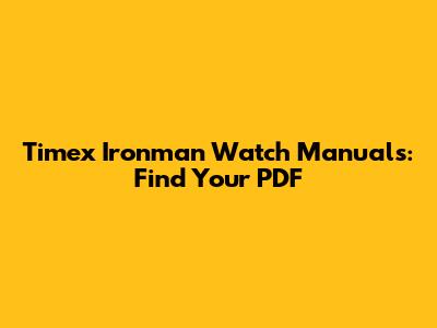 Timex Ironman Watch Manuals: Find Your PDF