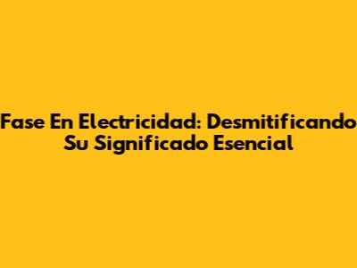 Fase En Electricidad: Desmitificando Su Significado Esencial