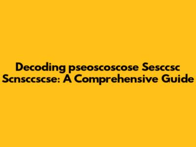 Decoding 'pseoscoscose Sesccsc Scnsccscse': A Comprehensive Guide