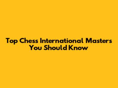 Top Chess International Masters You Should Know