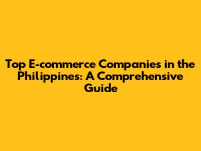 Top E-commerce Companies In The Philippines: A Comprehensive Guide