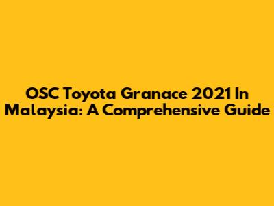 OSC Toyota Granace 2021 In Malaysia: A Comprehensive Guide