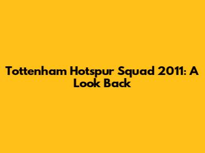 Tottenham Hotspur Squad 2011: A Look Back