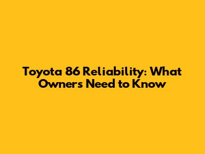 Understanding the Toyota 86's Reliability