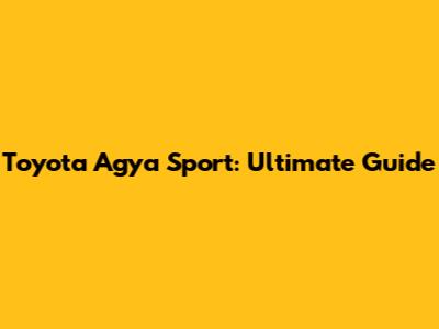 Toyota Agya Sport: Ultimate Guide