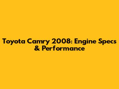 Toyota Camry 2008: Engine Specs & Performance